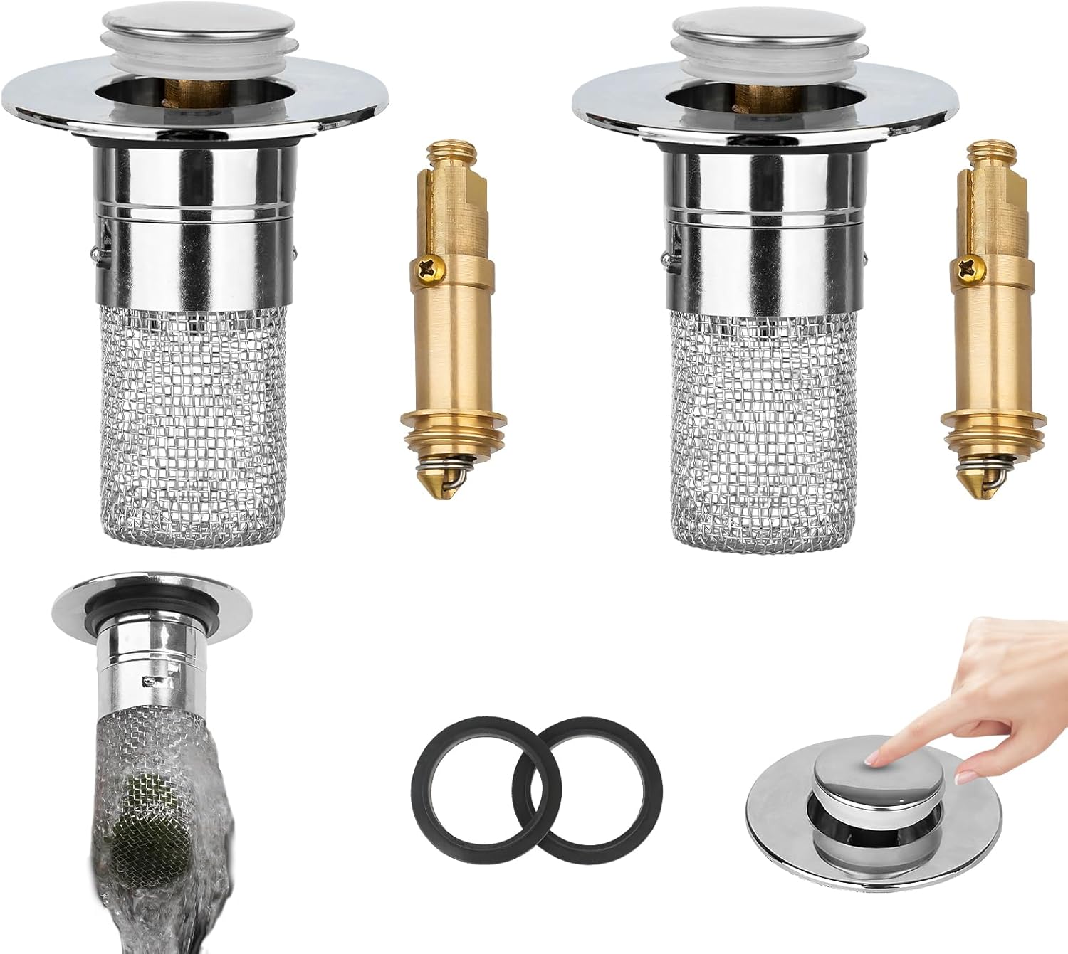 - 【Efficient Drainage】The sink drain strainer bathroom has a bullet core thrust shape, good rebound strength, drainage is fast and smooth with a single press, for fast water flow and a built-in clogging basket that maintains proper drainage and prevents blockages.