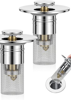 - 【Best Choice】This innovative fusion product of an upgraded pop-up bathroom sink stopper and a removable filter basket brings great convenience to users’ daily life with its unique design and practical functions.